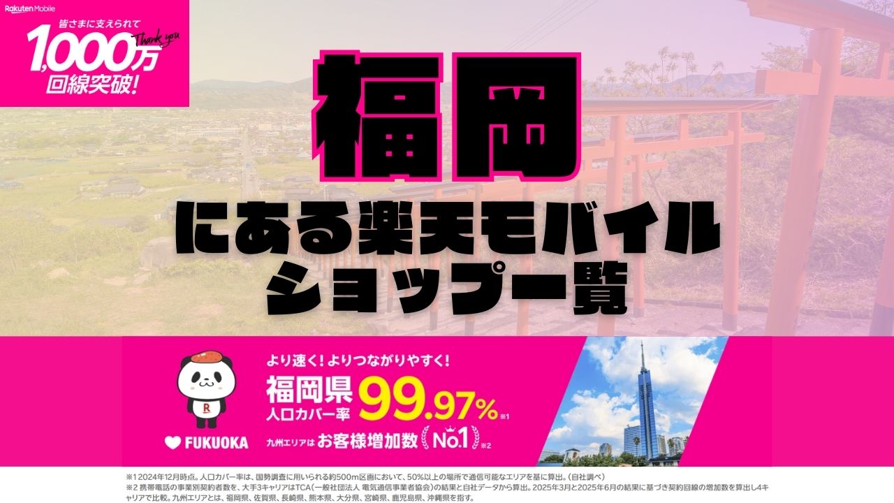 この記事では福岡にある楽天モバイルのショップについてご紹介します。※2026年1月更新 楽天モバイルの福岡での人口カバー率はなんと99.95%! 福岡市や筑後だけでなく、北九州や築豊まで広くカバーして ...