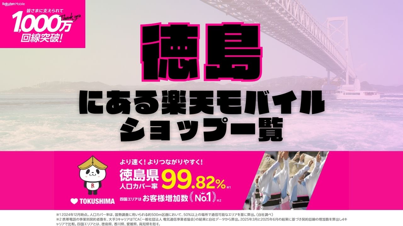 この記事では徳島県内にあるすべての楽天モバイルのショップについてご紹介します。※2026年1月更新 楽天モバイルの徳島での人口カバー率はなんと99.72%! 徳島・鳴門はもちろん、吉野川や三好、南部エ ...