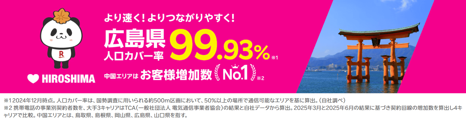 楽天モバイルの広島での人口カバー率はなんと99.93%!