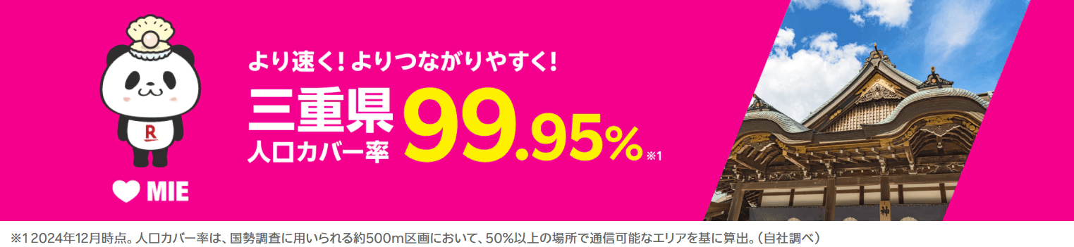 楽天モバイルの三重での人口カバー率はなんと99.91%!