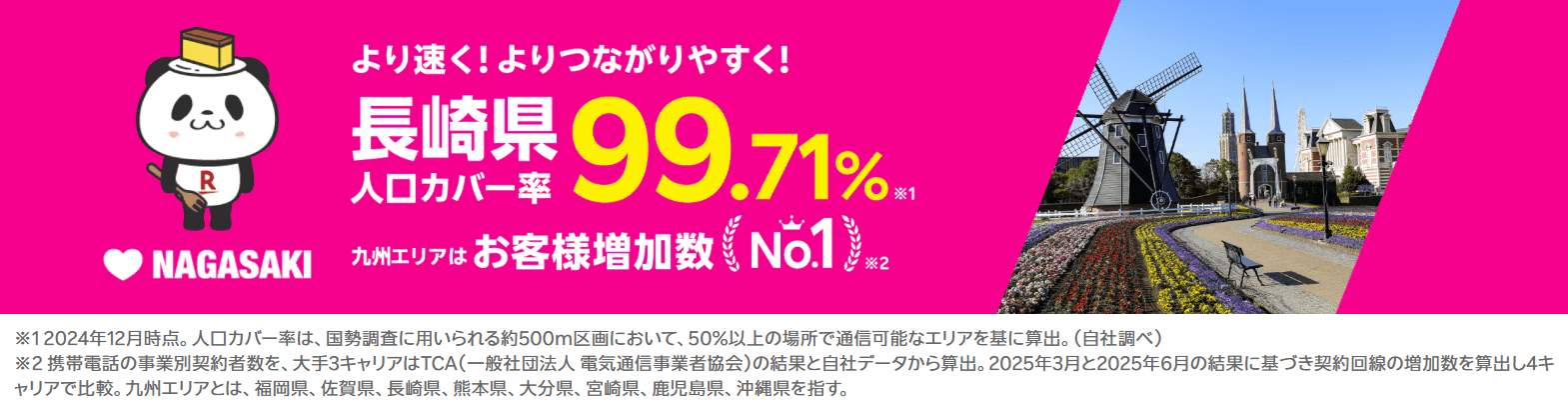 楽天モバイルの長崎での人口カバー率はなんと99.67%!