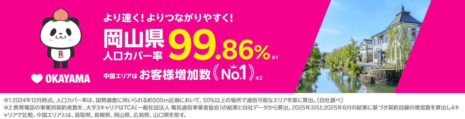 楽天モバイルの岡山での人口カバー率はなんと99.82%!