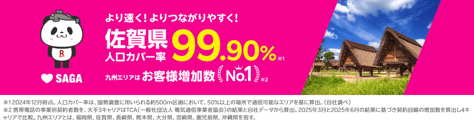楽天モバイルの佐賀での人口カバー率はなんと99.87%!