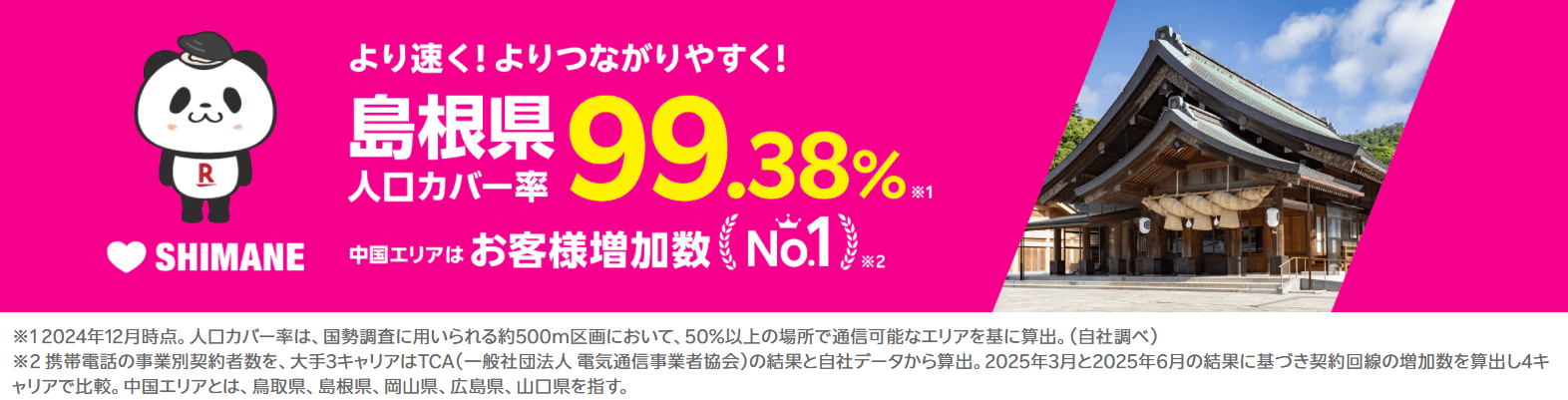 楽天モバイルの島根での人口カバー率はなんと99.34%!