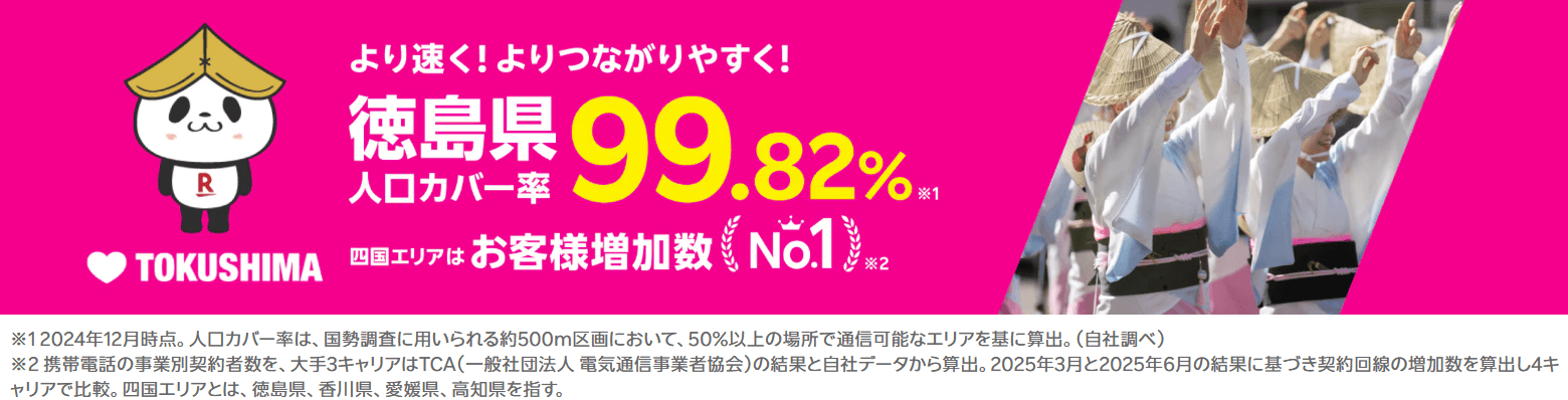 楽天モバイルの徳島での人口カバー率はなんと99.72%!