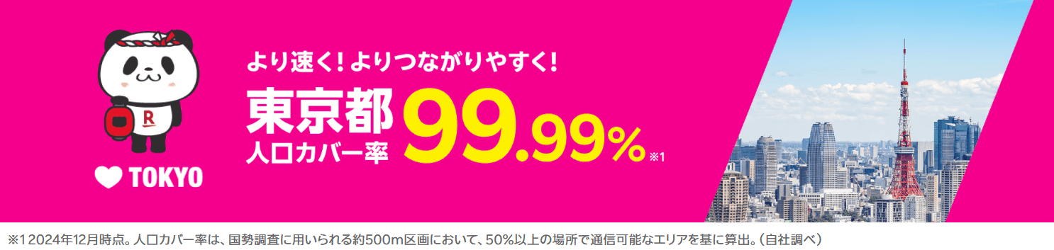 楽天モバイルの都内での人口カバー率はなんと99.98%!
