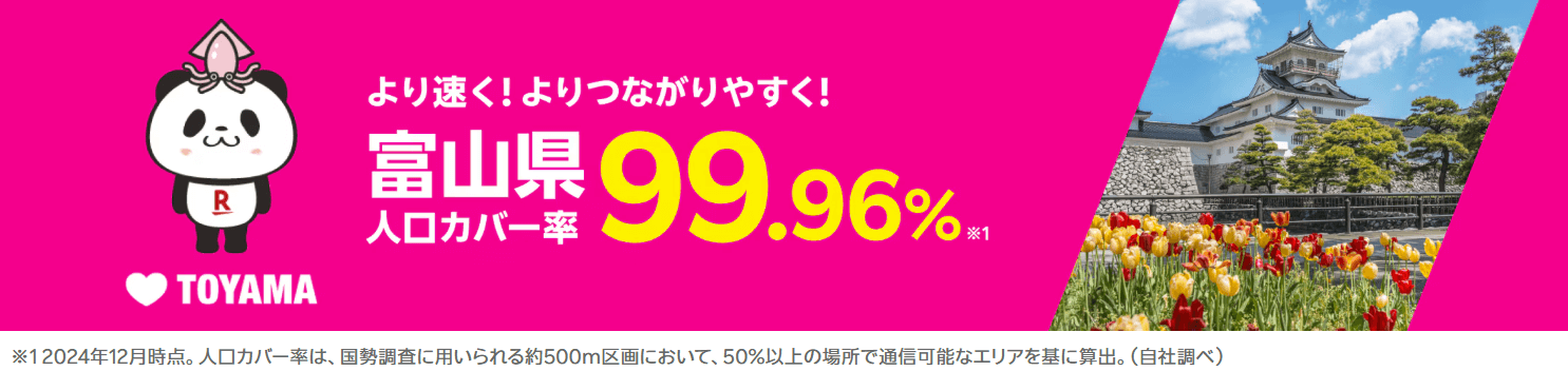 楽天モバイルの富山での人口カバー率はなんと99.89%!