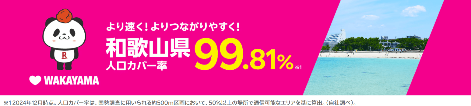 楽天モバイルの和歌山での人口カバー率はなんと99.77%!